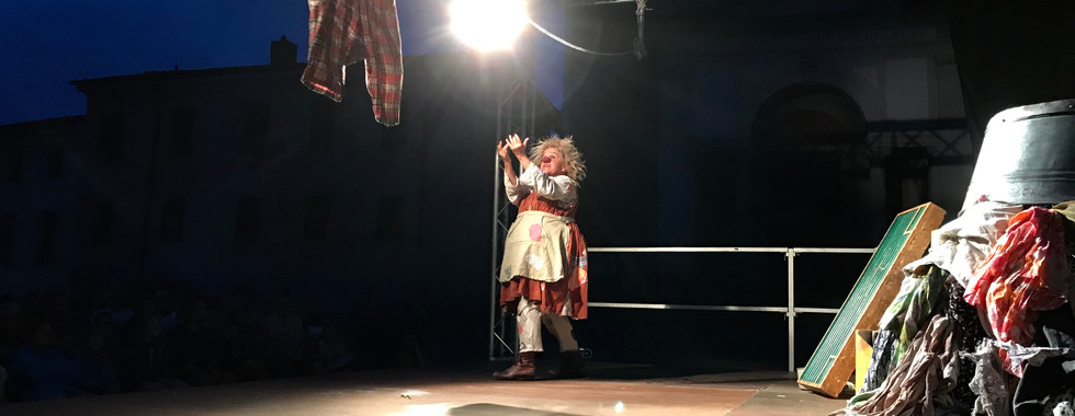 Acune fotografie dello spettacolo teatrale "Giovanna d'Arpo", proposto nell'ambito della mostra temporanea "Fare il filo", che si è tenuto in Piazza Maggiore a Stabio il 21 giugno 2018.
